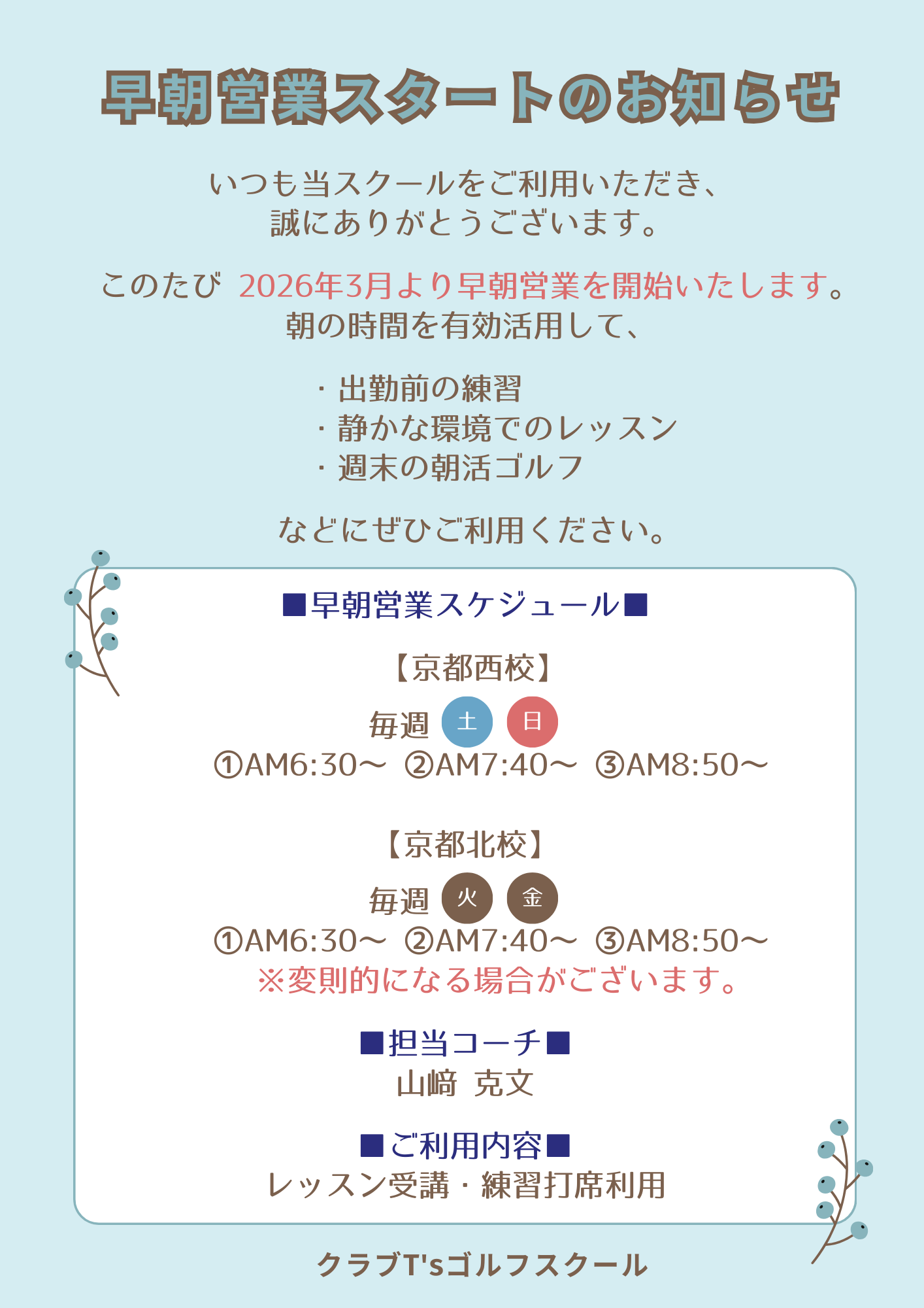 📣早朝レッスン枠増設のお知らせ📣